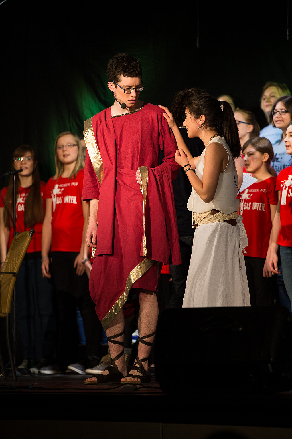 Begeisterung – Hingabe – Gemeinschaft – diese drei Worte beschreiben die Musicals, die beinhahe jährlich von der evangelischen Gemeinde auf die Beine gestellt werden. Das Musical „Das Urteil“ ist das 5. dieser Art und die Begeisterung wächst in den 40 Kindern und Jugendlichen im Alter von 11 bis 18 Jahren, die seit Herbst die CD´s mit den 15 Lieder zuhause rauf und runterlaufen lassen, um text- und stimmsicher zu werden. Auch die Eltern werden in dieser Zeit bereits „infiziert“. Die Hingabe entspringt den Herzen der Mitarbeiter in den Bereichen Chor, Schauspiel, Choreographie, Bühe, Band, Licht und Ton, Küche, Organisation, Film und Foto. Geprobt wird eine Woche lang in der zweiten Osterferienwoche, täglich von 9:30 bis 17 Uhr, um das Musical bühnenreif zu machen. Erstmalig wird es auch einen vierstimmigen Chor geben.